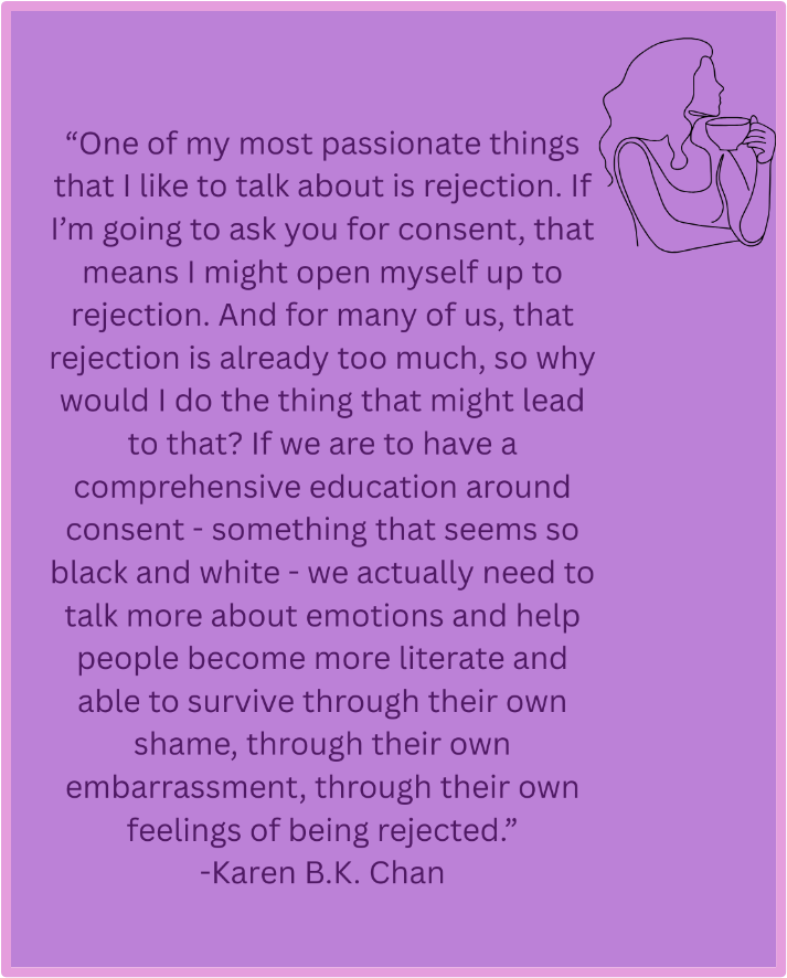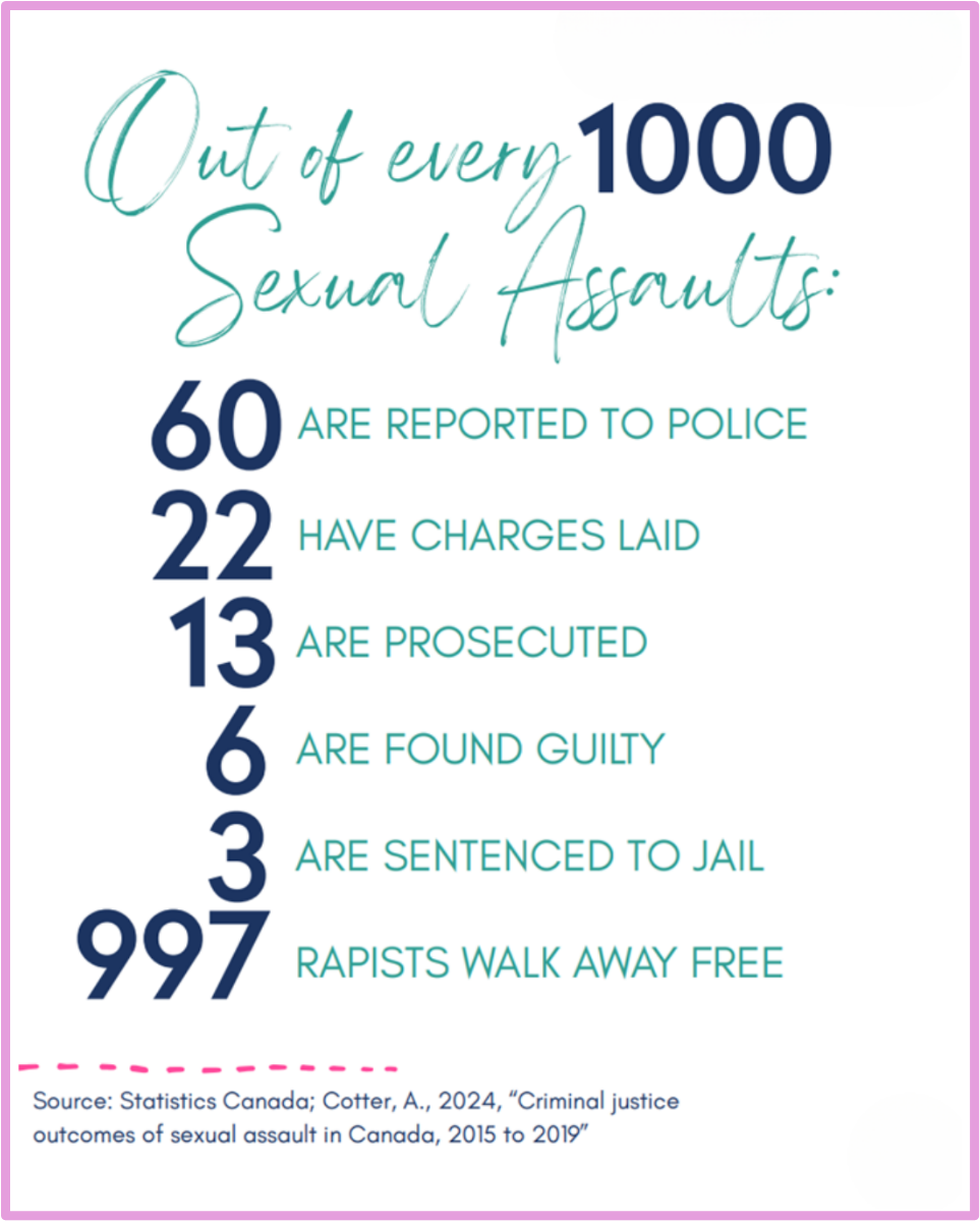 We have heard this story too many times. As Sexual Assault Support Centres, as Women’s Shelters, as Consent Educators, as people who long to feel safe and included in our communities, we have been asking for generations for bodily autonomy: the ability to decide for oneself what happens with their body. We are asking our sexual and romantic partners to care more about our comfort and safety than they care about fulfilling any sexual fantasy, because we cannot experience desire without first experiencing safety. We are asking the media to care more about the impact of their messaging on cultural norms than they care about maximizing clicks or likes or engagement through the sensationalization of the violence we experience. We are asking sports industries to prioritize being a positive role model for healthy masculinity, because they have real power to prevent violence. We are asking mental health professionals to avoid pathologizing the experience of a victim / survivor / woman / human and instead consider that there may be something psychologically unhealthy in a society that condones and perpetuates violence. There is so much that we ask of the justice system on our path to a world where all beings are free, and we need the allyship of our partners, families, communities, the media, schools, the mental health industry, the sports industry and all factions of life as we continue to work towards a more just society. These asks have been made in desperation, in anger, in love, in patience, in urgency, over and over again and hang, suspended in the air over our heads across generations. They are invitations waiting to be plucked out of the air by anyone at anytime, and they are invitations to co-create a world with more freedom and compassion for everyone.