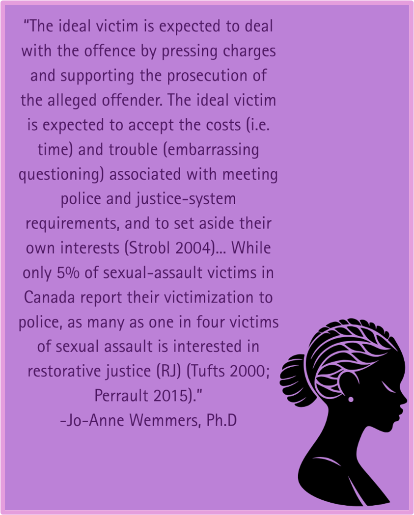Wemmers, Jo-Anne, PhD (2021). “Judging Victims: Restorative choices for victims of sexual violence.” Victims of Crime Research Digest No.10: Judging Victims: Restorative choices for victims of sexual violence - Victims of Crime Research Digest No. 10
