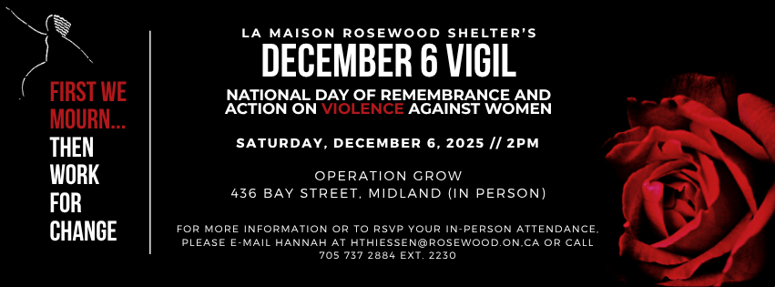 On December 6th, 2025, the National Day of Remembrance and Action on Violence Against Women, our community gathered to honour, mourn and remember the lives of the women and children across Ontario who have lost their lives this year due to the ongoing epidemic of gender-based violence.
